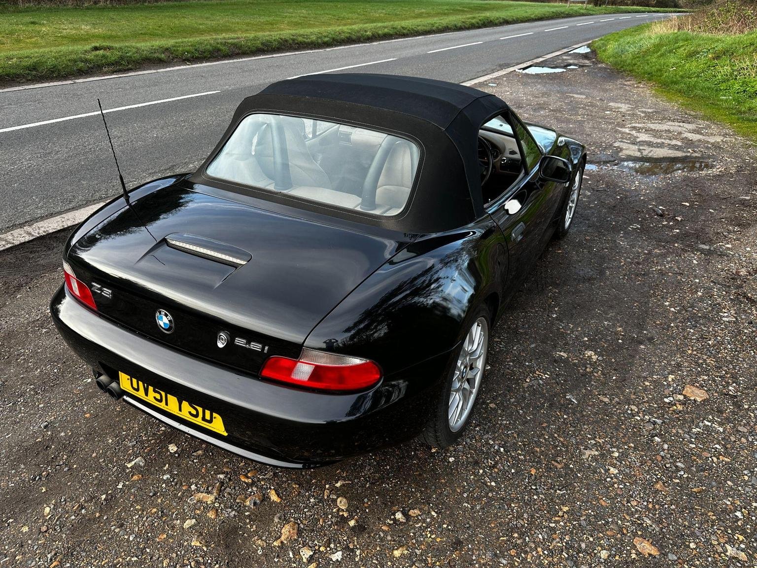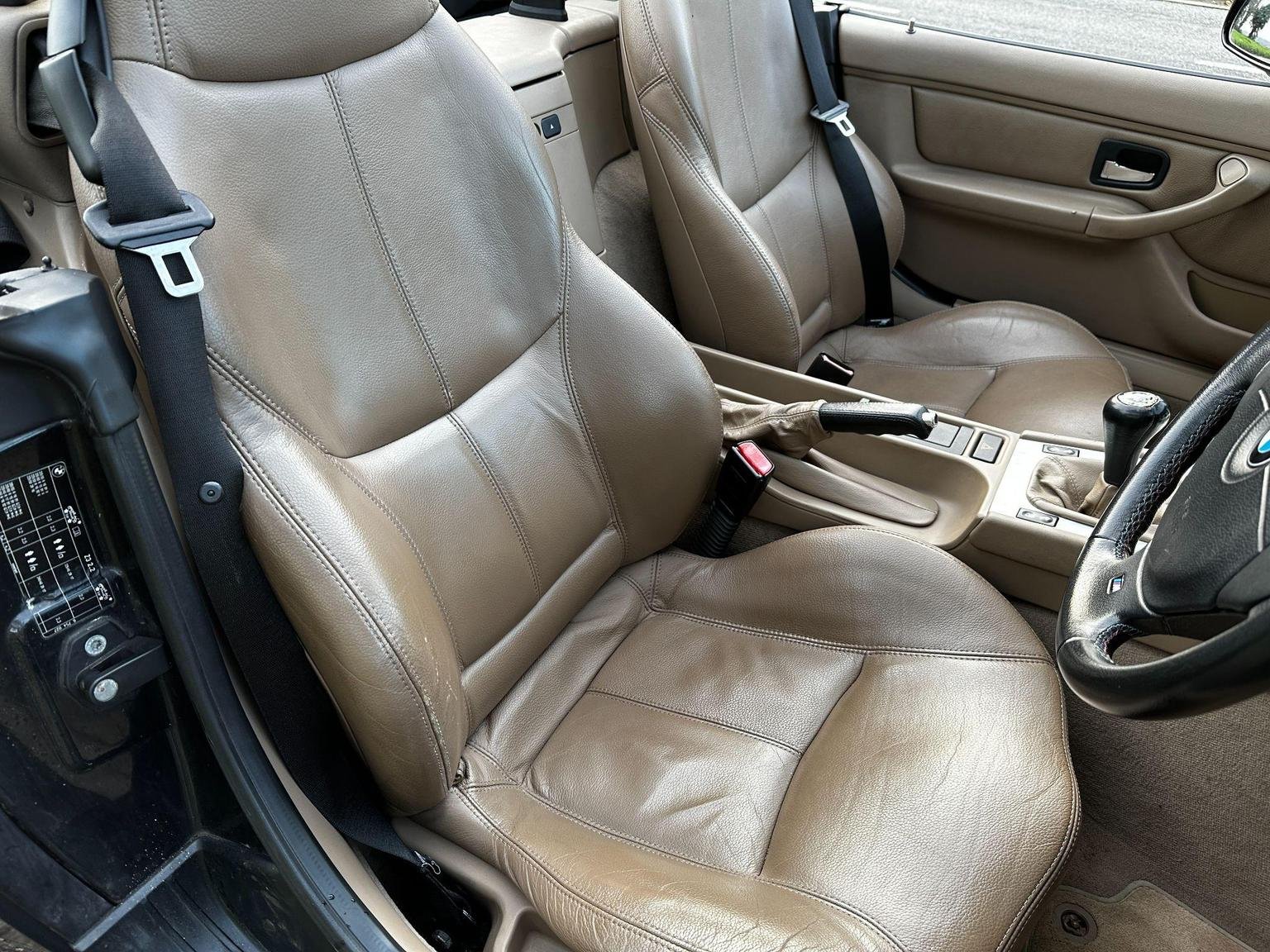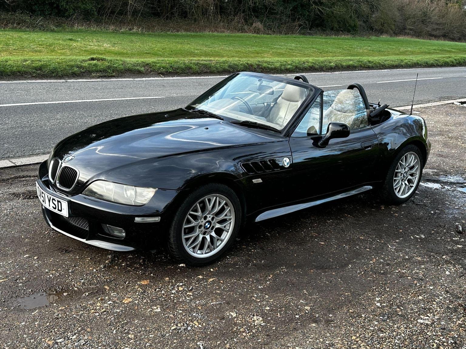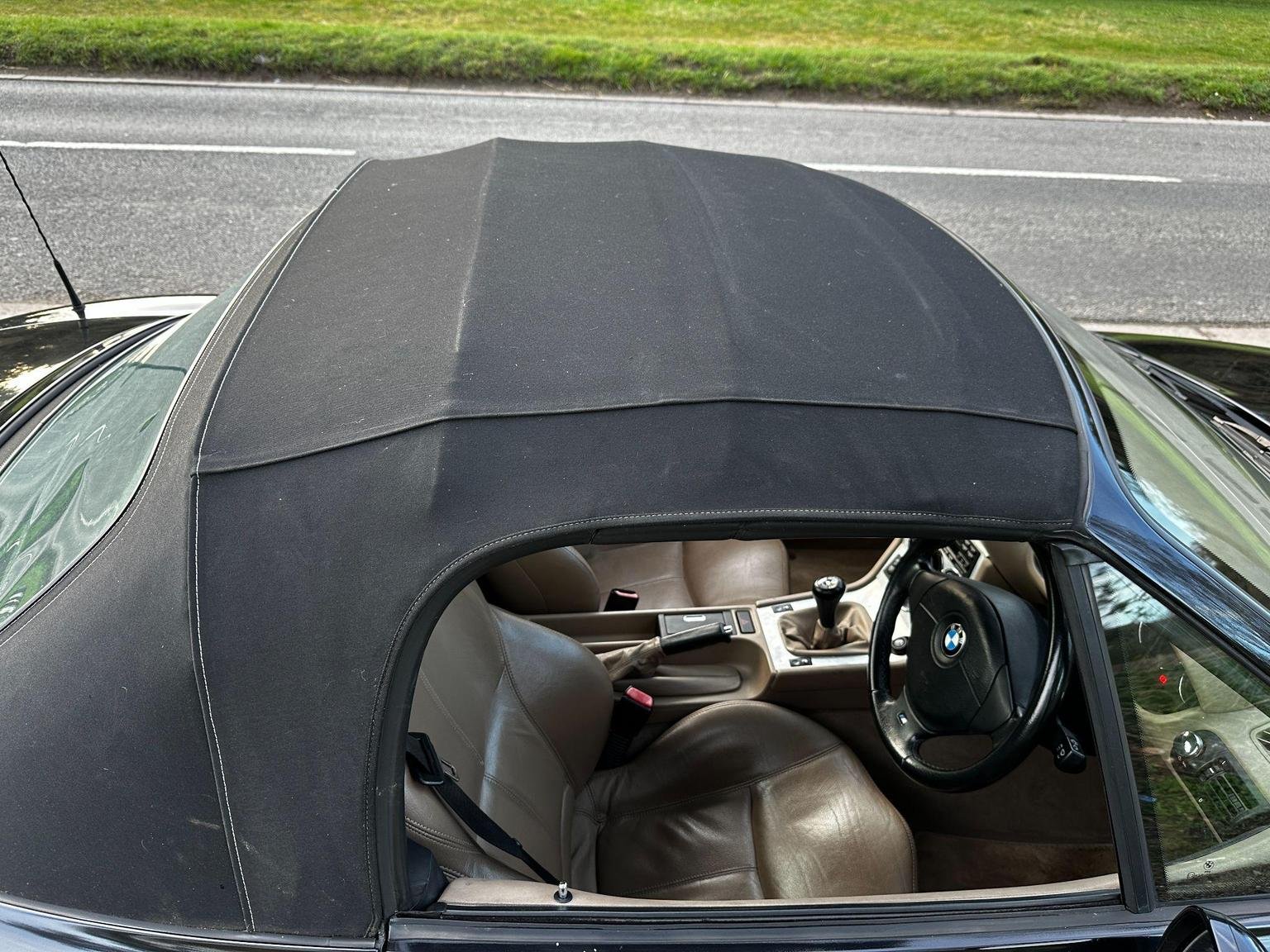 BMW Z3 2.2 V6 in black with the contrasting biscuit interior. A great spec with the power hood, sport alloys, air conditioning and heated seats. Only 2 owners from new! 9 services in the book. This is the wide body V6 version, so has a great stance on the road. The hood is in excellent condition, it is the double lined version so it gives you better noise and weather insulation in the winter, also doesn't have the condensation issues of the single skin hoods. The rear screen is in excellent condition, they can be cloudy and difficult to see thorough.