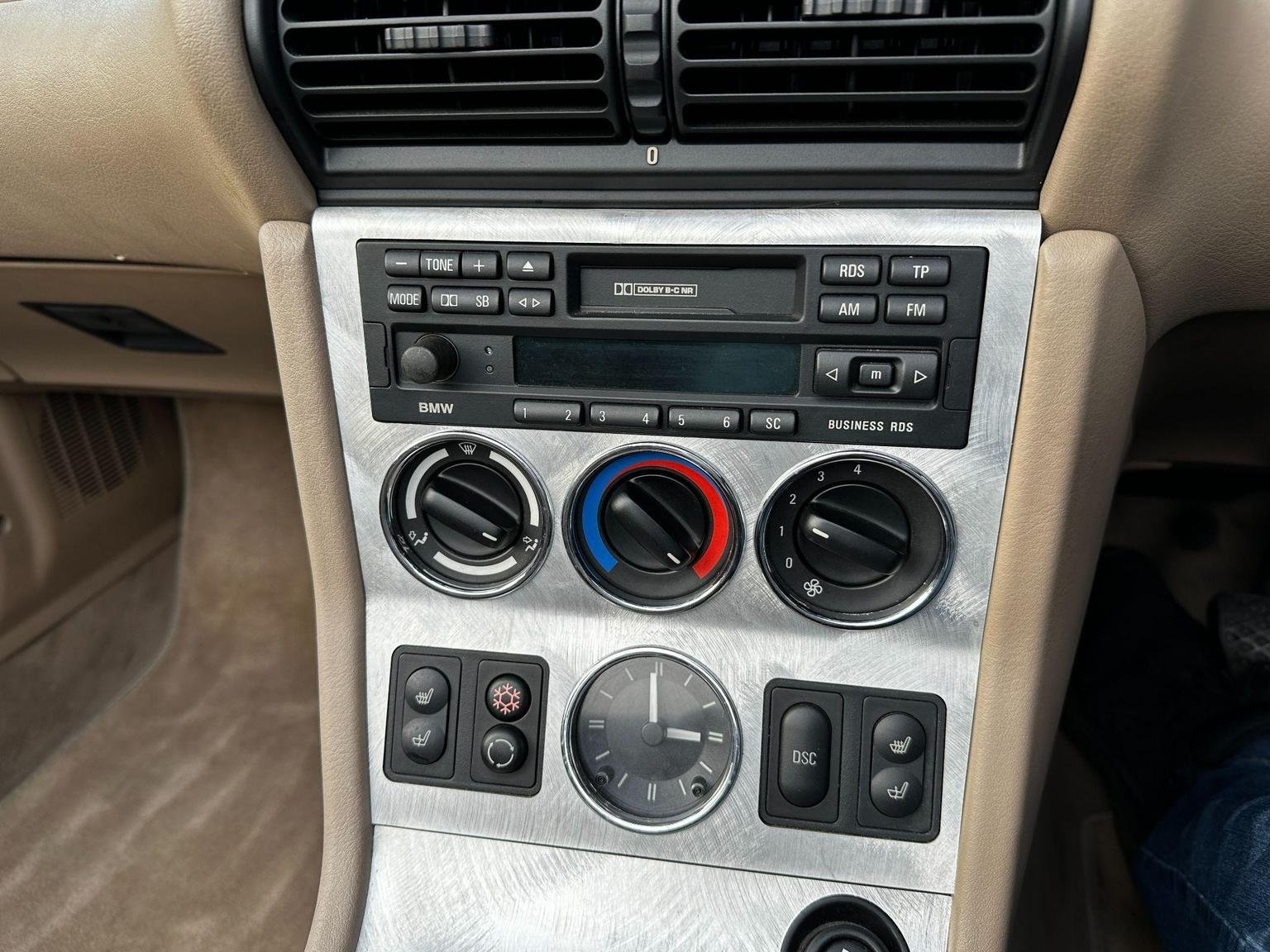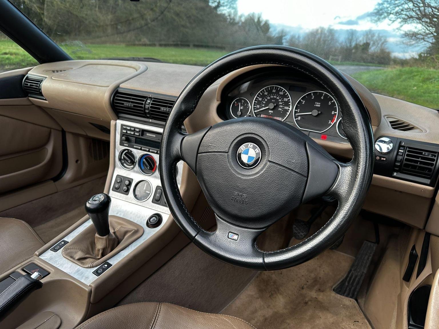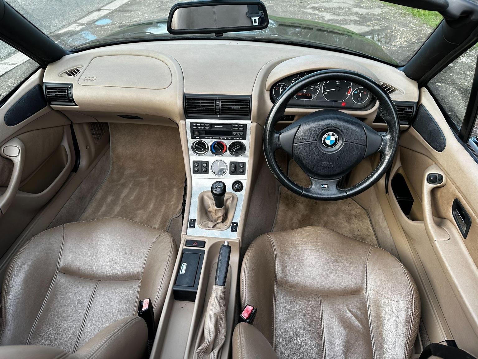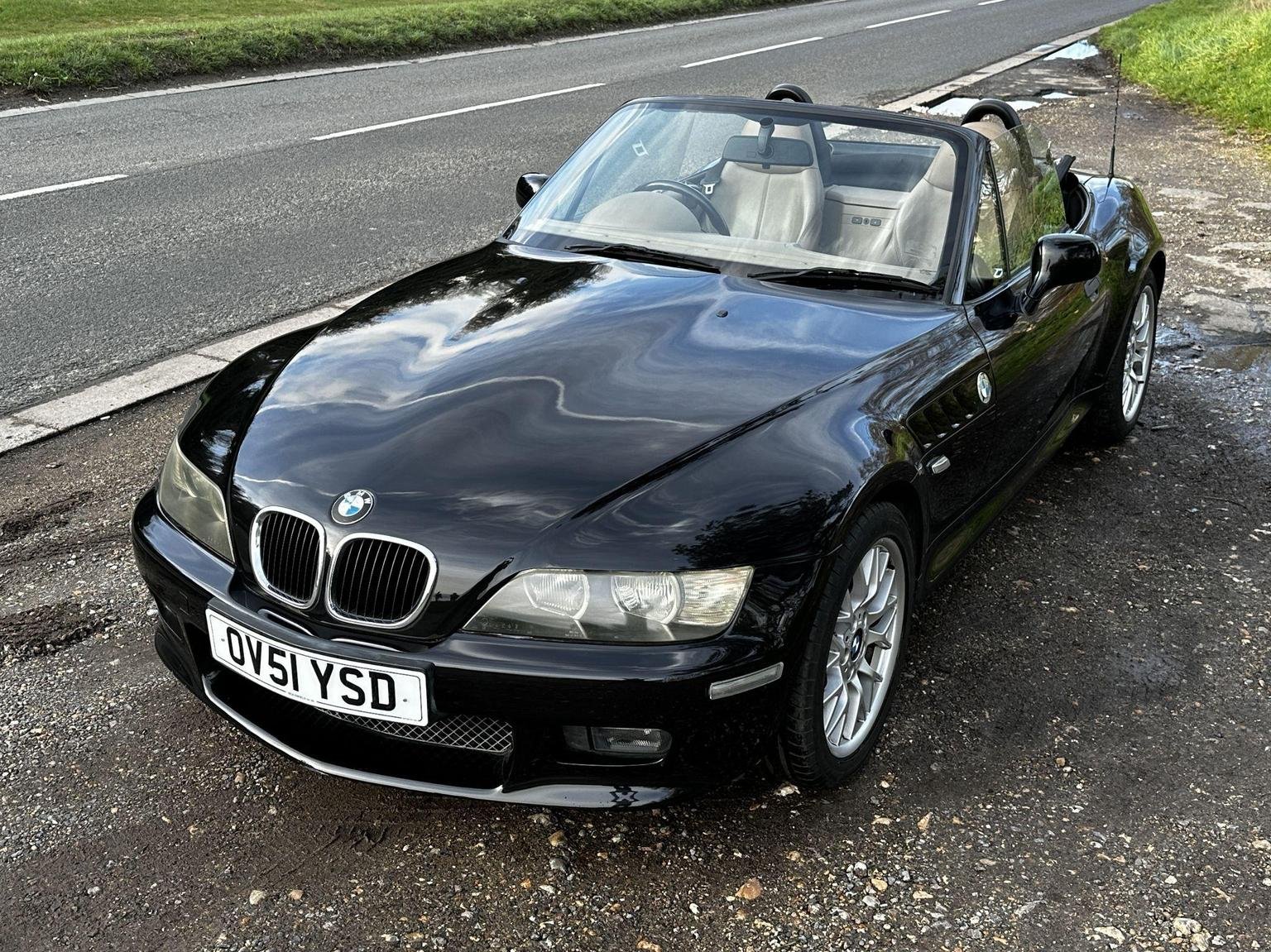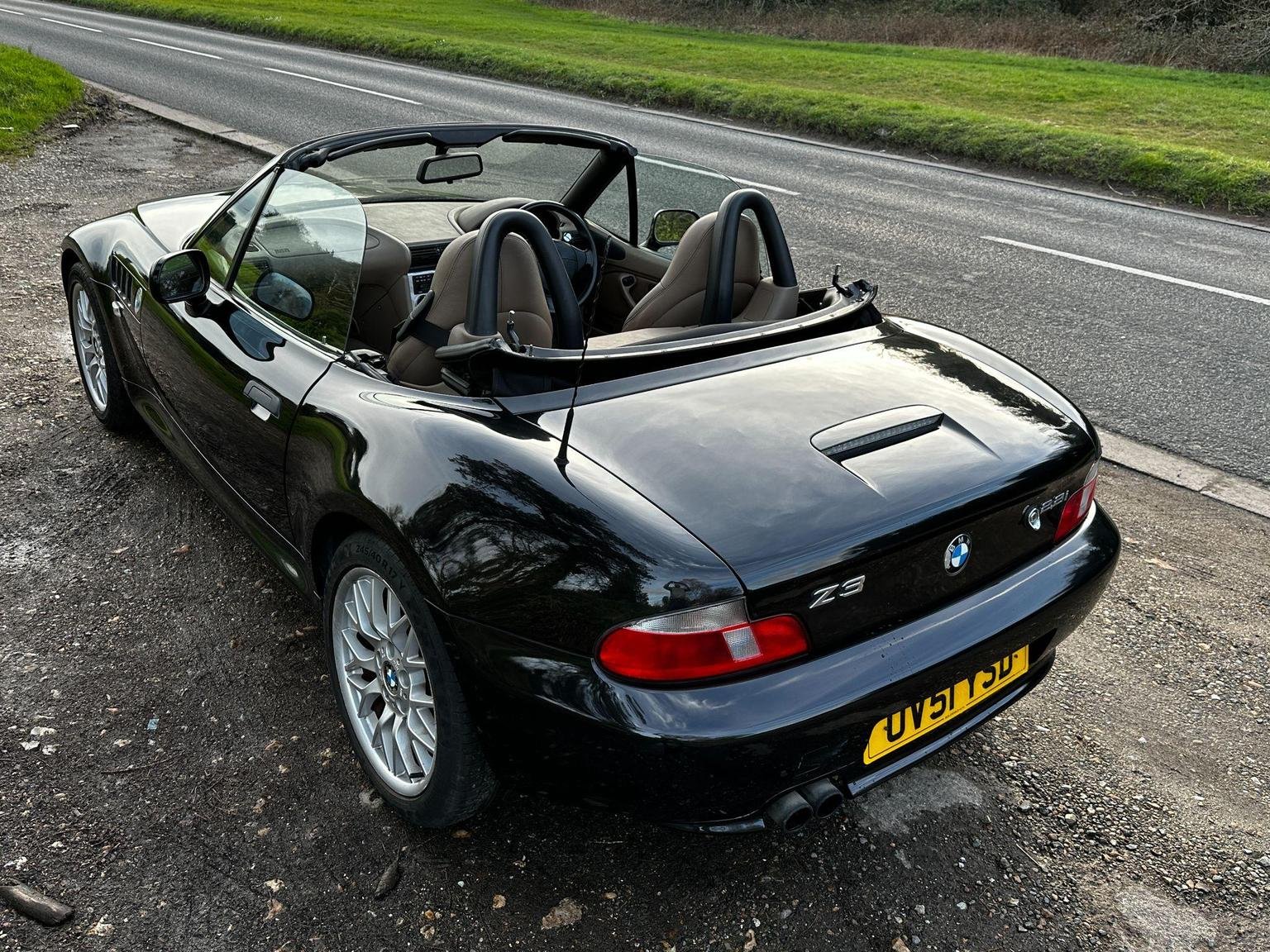 BMW Z3 2.2 V6 in black with the contrasting biscuit interior. A great spec with the power hood, sport alloys, air conditioning and heated seats. Only 2 owners from new! 9 services in the book. This is the wide body V6 version, so has a great stance on the road. The hood is in excellent condition, it is the double lined version so it gives you better noise and weather insulation in the winter, also doesn't have the condensation issues of the single skin hoods. The rear screen is in excellent condition, they can be cloudy and difficult to see thorough.